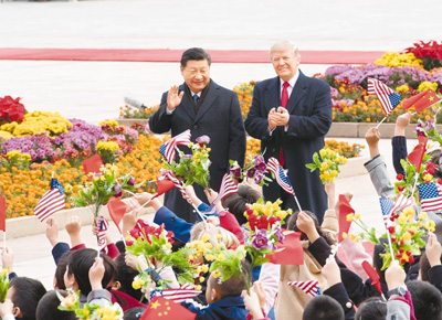 11月9日,國家主席習(xí)近平在北京人民大會堂東門外廣場舉行歡迎儀式,歡迎美利堅(jiān)合眾國總統(tǒng)唐納德·特朗普對中國進(jìn)行國事訪問。(記者 李學(xué)仁 攝)