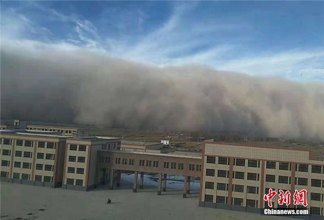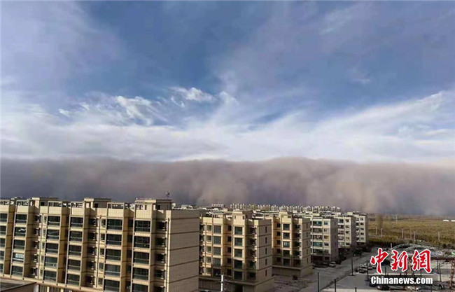 11月25日,甘肅張掖沙塵暴來襲,“沙墻”高達上百米,伴有7至8級大風,張掖消防啟動應急預案。高繼文 攝