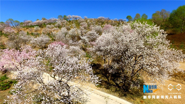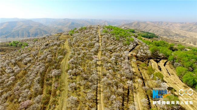 原標題:【飛“閱”中國】甘肅定西:黃土塬上別樣景 千樹杏花笑春風