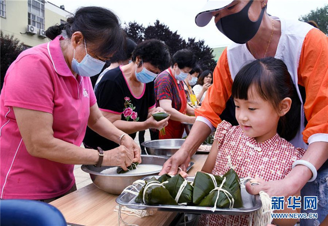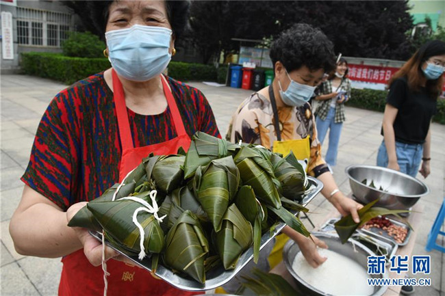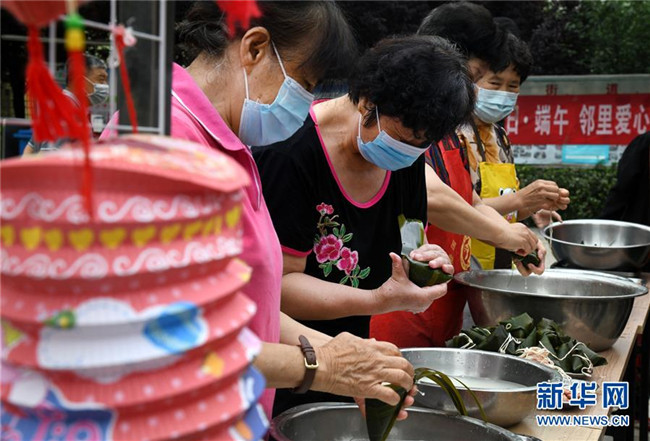 當(dāng)日,青島市北區(qū)水清溝街道開展迎端午鄰里愛心傳遞進(jìn)網(wǎng)格活動(dòng),居民通過包粽子、吃粽子、網(wǎng)上端午傳統(tǒng)文化課等形式傳遞鄰里愛心,傳承民俗文化。